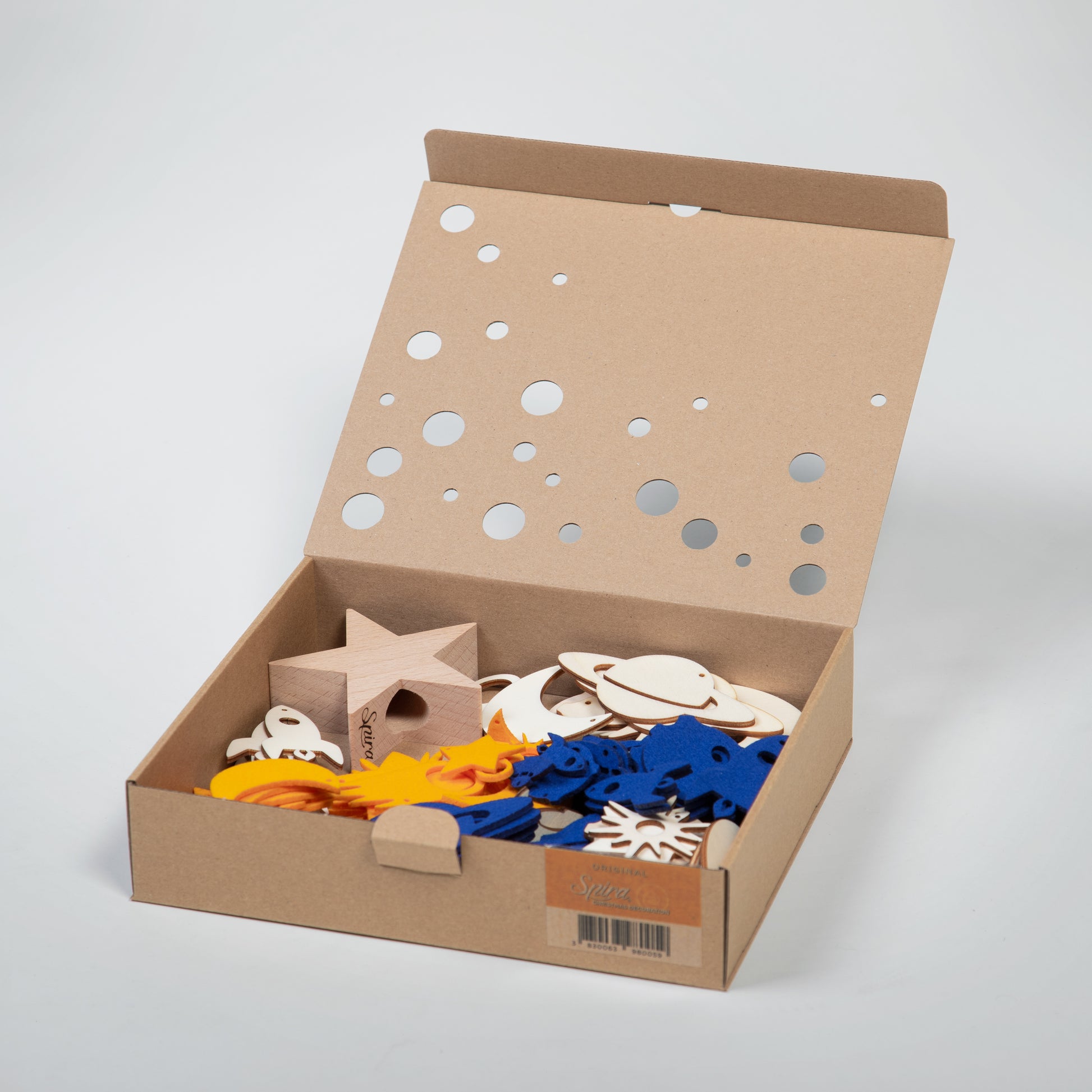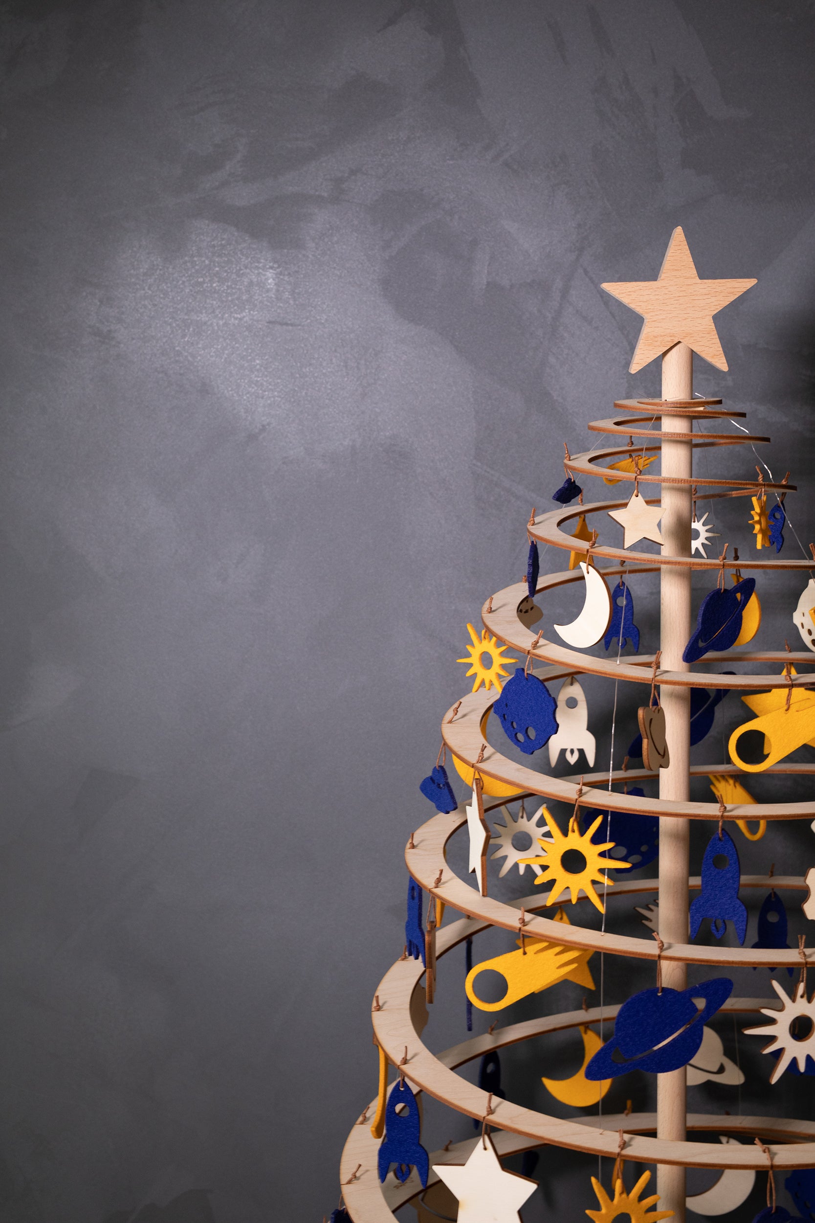 The only set of decorations you need. The mixture of felt and wood ornaments is suitable for all sizes of Spira Christmas trees. Natural materials of dynamic shapes will bring warmth and joy to your home, and the red colour will create a lively festive mood.